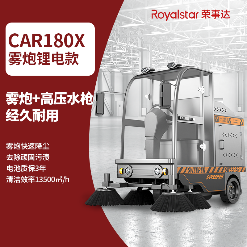榮事達RS-CAR180X 駕駛式掃地機一機解決工廠清潔問題,不挑地面,適用各種類型場景,如小區(qū)住宅、戶外道路、工廠車間等,20分鐘清潔2500平方米以上,一臺RS-CAR180X掃地機可節(jié)省約5-8人勞動成本。