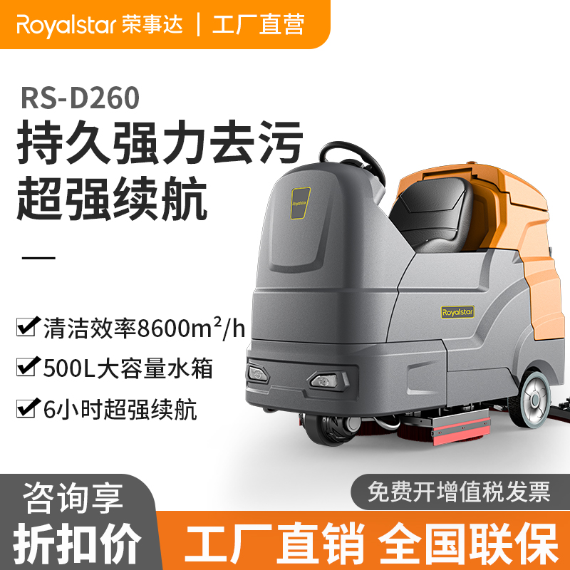 榮事達RS-D260大駕駛式洗地機 無需彎腰清潔一次搞定,清潔效率高省力更省錢一年勁省10W+
