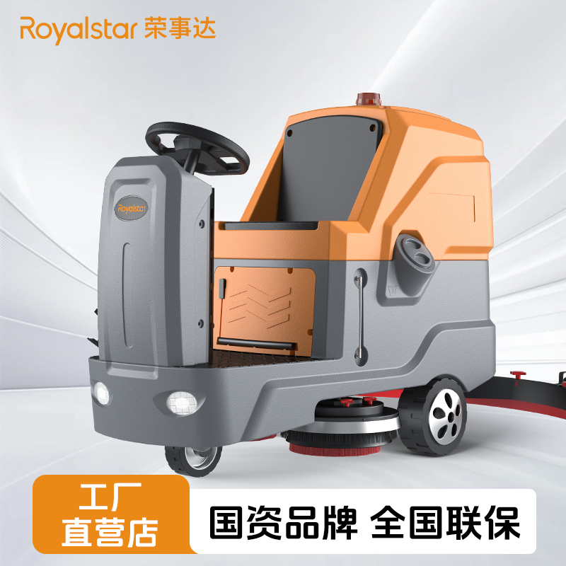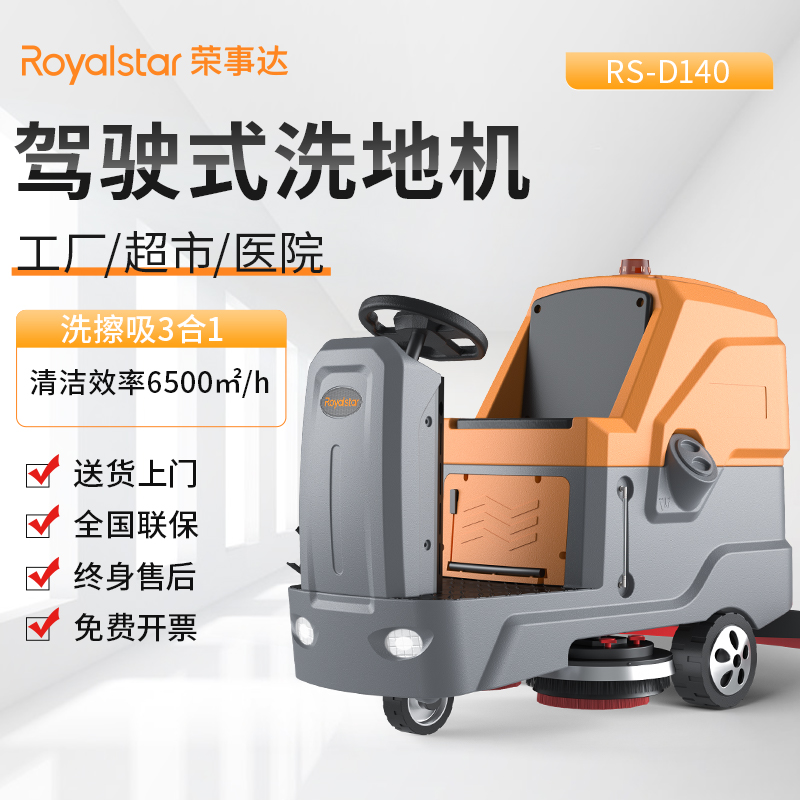 榮事達RS-D140 駕駛式洗地機的清洗操作面板一目了然,操作更加簡單快捷,配備了橡膠大滾輪,摩擦力更大,避免了操作...